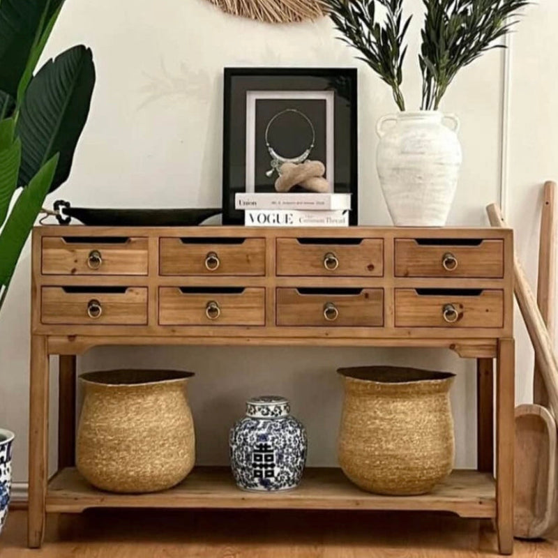 Arrimo de madera con 8 cajones espaciosos, ideal para organizar y almacenar en cualquier ambiente. Estructura robusta de 120 cm de ancho x 38 cm de profundidad x 80 cm de altura, equipada con tomadores de metal de alta calidad que garantizan durabilidad y un acabado elegante. Perfecto para dormitorios, salas o espacios de trabajo que requieren funcionalidad y diseño.